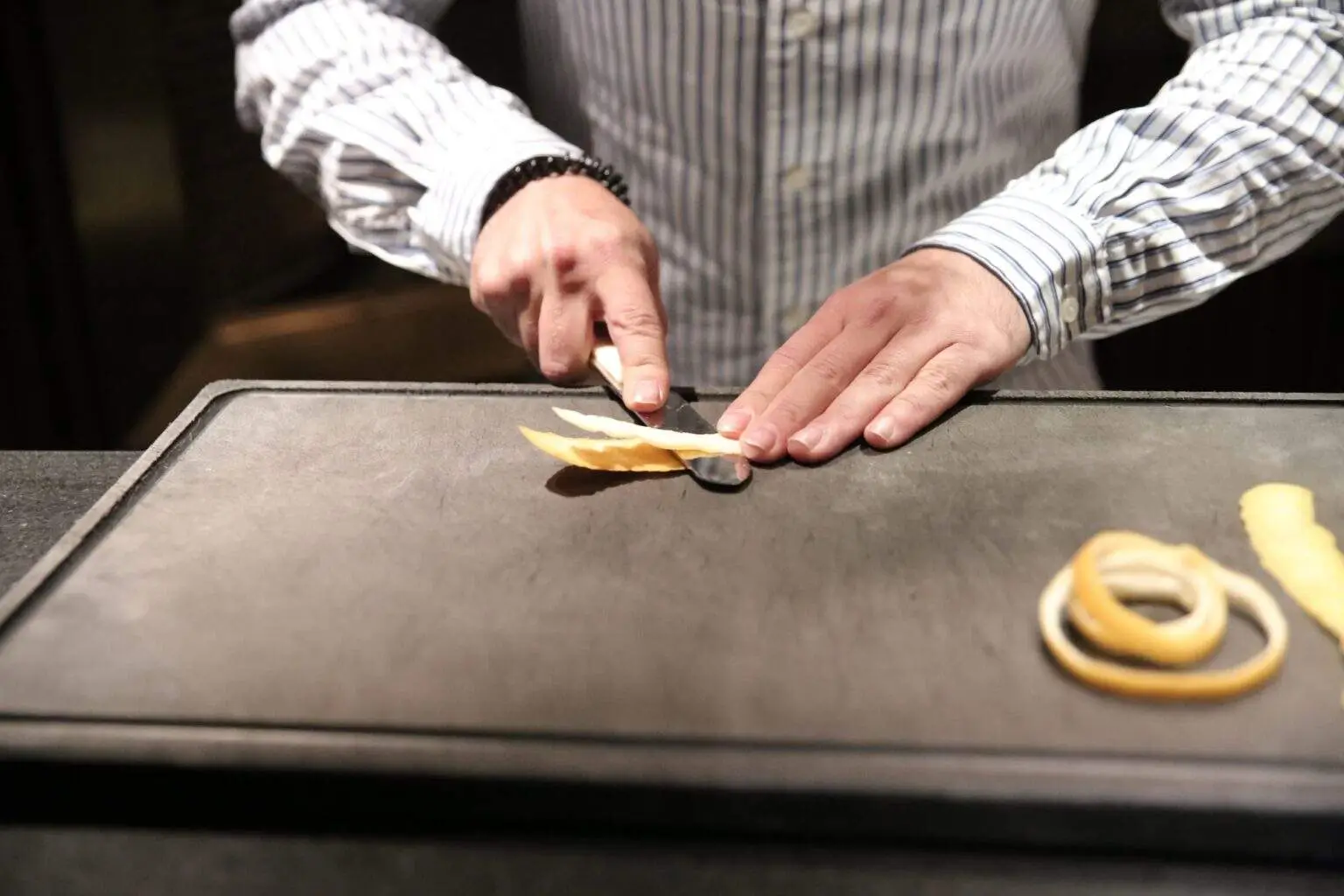 Pour décorer votre breuvage, il vous suffit de couper des zestes de pamplemousse et de les enrouler au bord de votre contenant.