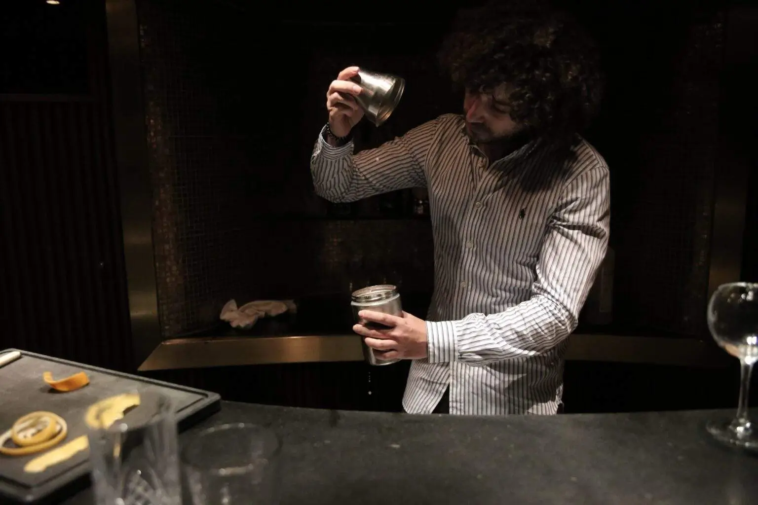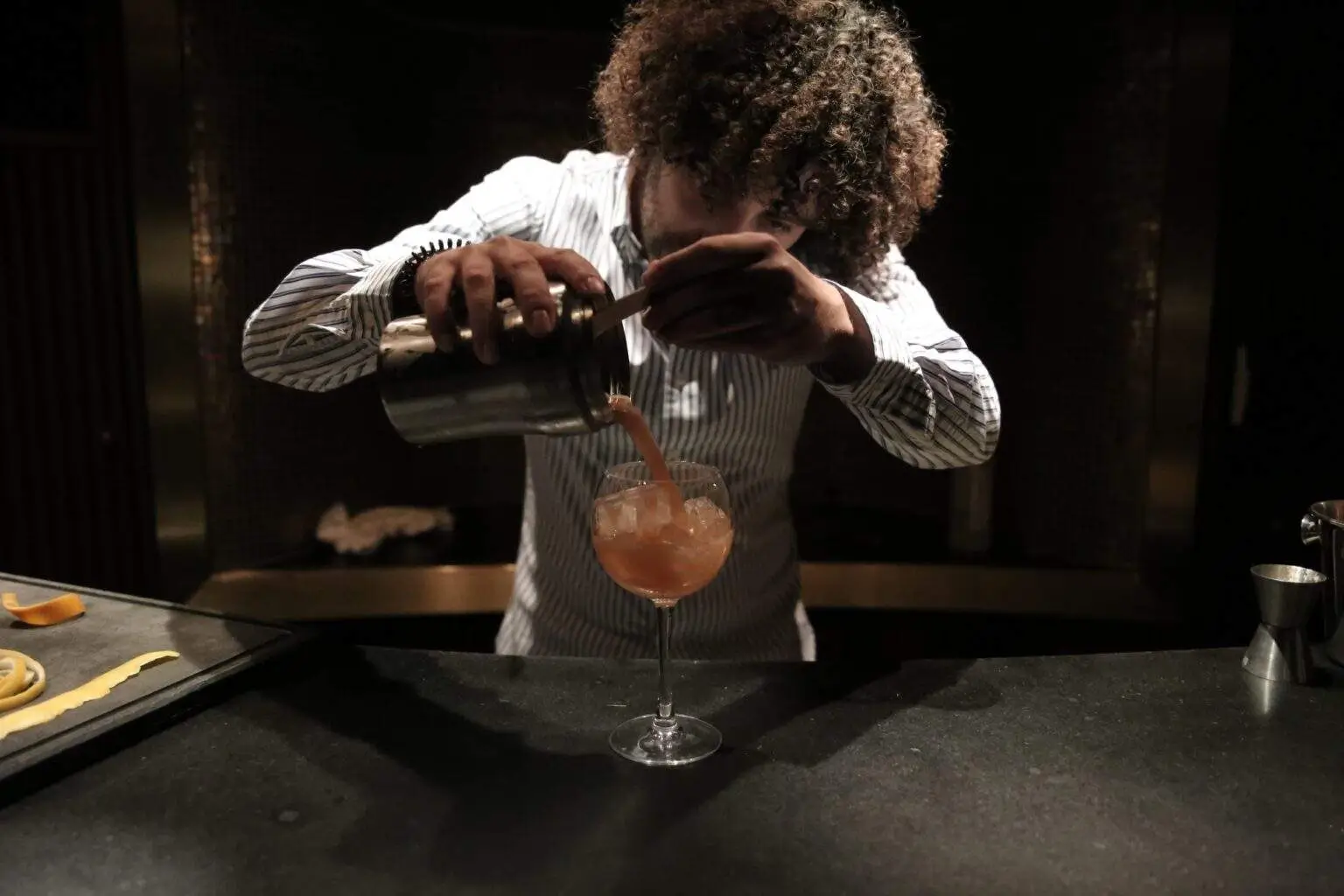 Dans un shaker, versez 3 cl de gin Bombay Sapphir et 4 cl d'Aperol (ou Campari).