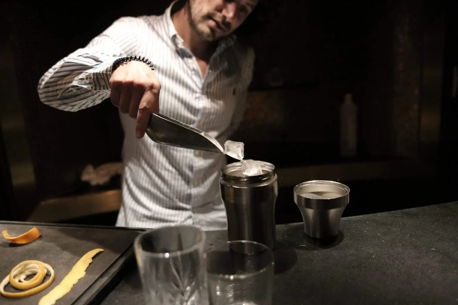 Glissez ensuite quelques glaçons puis shakez énergiquement.