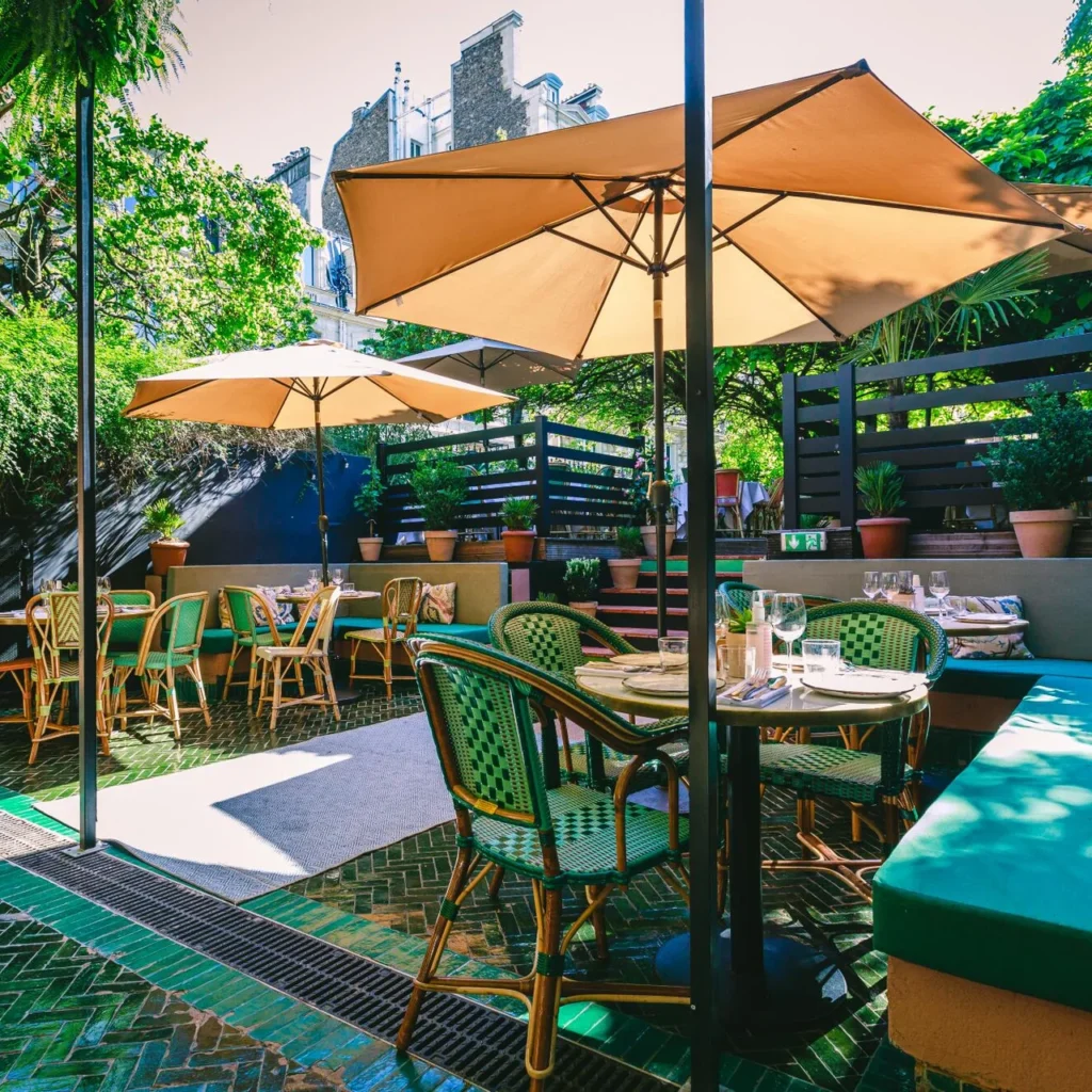 Andia ne se limite pas à une verrière, aussi belle soit-elle. Lorsque la météo est clémente, profitez de ses espaces extérieurs : sa terrasse est un patio végétalisé encore plus vert que le restaurant.