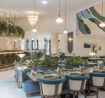Pour accéder au restaurant, on entre du côté du Boulevard des Capucines ou par l’accès principal de l’hôtel. L’extraordinaire patio qui se révèle à notre regard une fois à l’intérieur laisse très rapidement place à tout ce décor lumineux où des tables en marbre, une cuisine ouverte et un comptoir d’une beauté unique viennent se donner en spectacle. Hauts plafonds, touches de bleu, espaces intimistes, du mobilier en velours, aménagement en bois… tout est fait pour magnifier l’élégance et l’esprit trendy californien.