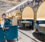 Dans cette ambiance urbaine, des meubles s’ajoutent pour offrir un confort chic et élégant à cet espace : tables basses, fauteuils profonds au design unique et un comptoir pour admirer les cuisiniers. On retrouve ainsi dans une ambiance feutrée et lounge qui se lie à merveille avec l’expérience culinaire que l’on s’apprête à découvrir ensuite.