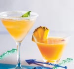 - Givrez un verre à cocktail en le trempant dans le jus de citron restant et en le déposant sur du sel (appuyez et tournez le verre pour faire adhérer le sel).