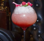 Pour “habiller” le cocktail, taillez un zeste de citron vert en épi, placez-le sur la glace pilée et ajoutez une framboise fraîche au centre.